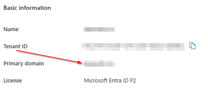 - Next, collect your Primary Domain, which can be located on the landing page of Azure on the Overview page; this will be used for the Organization field later on