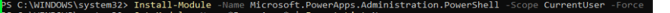 Install-Module -Name Microsoft.PowerApps.Administration.PowerShell -Scope CurrentUser –Force