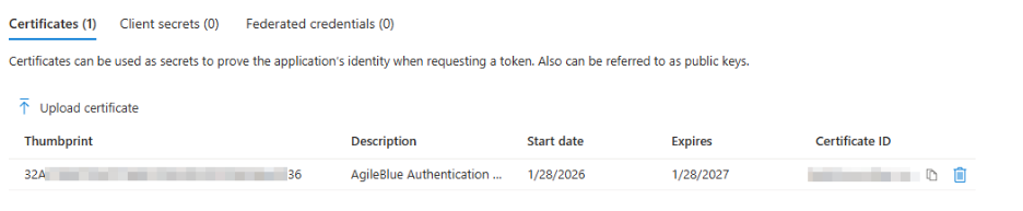 - Copy the Thumbprint value found on the ensuing page, which will be needed later on